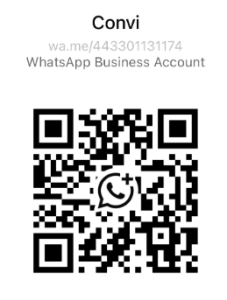 Scan the QR Code below to start a WhatsApp chat with Convi (Only via WhatsApp: 0330 1131174):