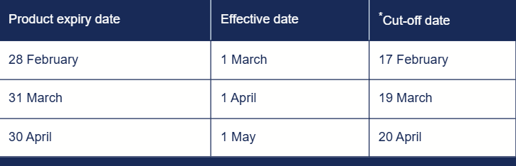 Products will be withdrawn from the system at midnight Wednesday 4 February – see our latest updates for details. You’ll be able to apply for any new products from the stated launch date.