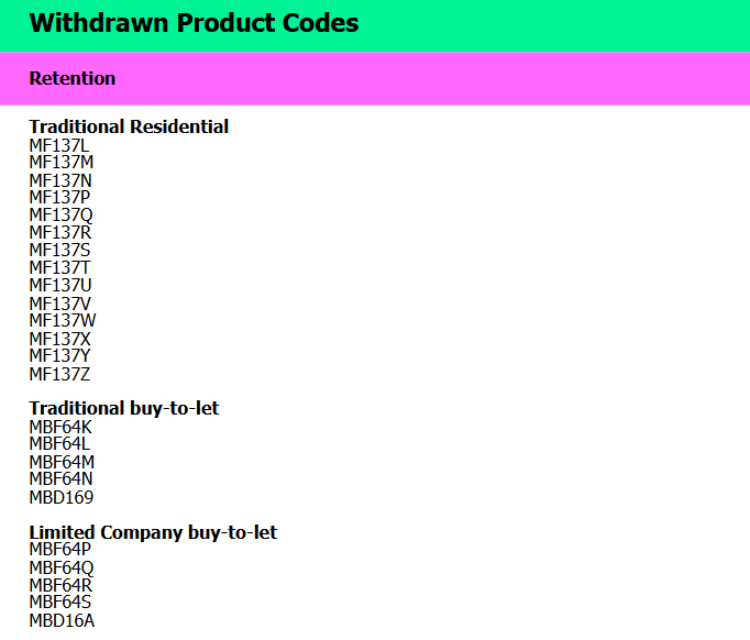 Please see below for a list of products being withdrawn on Friday 7 November. Applications for withdrawn products must be submitted by 9am on Friday 7 November.
