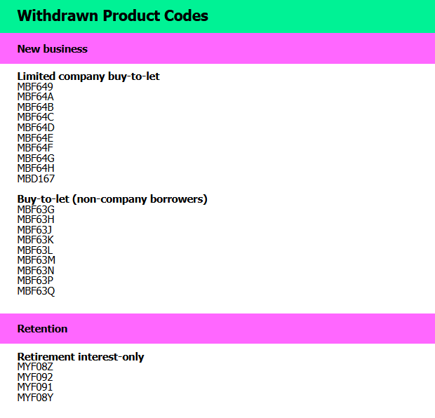 Please see below for a list of products being withdrawn on Friday 17 October. Applications for withdrawn products must be submitted by 9am on Friday 17 October.