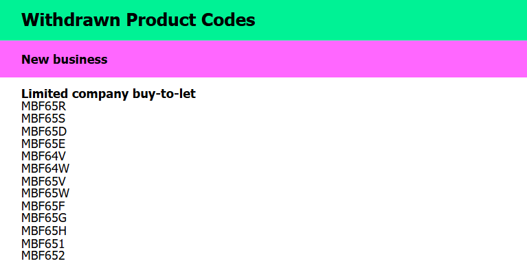 Please see below for a list of products being withdrawn on Friday 21 November. Applications for withdrawn products must be submitted by 9am on Friday 21 November.