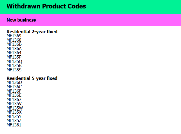Please see below for a list of products being withdrawn on Friday 26 September. Applications for withdrawn products must be submitted by 9am on Friday 26 September.