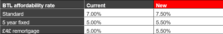 - All our Buy to Let affordability rates are going up by 0.50%.